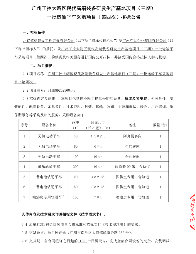 招標(biāo)公告【終稿】-廣州工控大灣區(qū)現(xiàn)代高端裝備研發(fā)生產(chǎn)基地項(xiàng)目(三期)一批運(yùn)輸平車采購(gòu)項(xiàng)目(第四次).docx