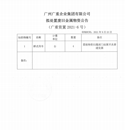 廢舊設備處理(廣重資置2021-6號)
