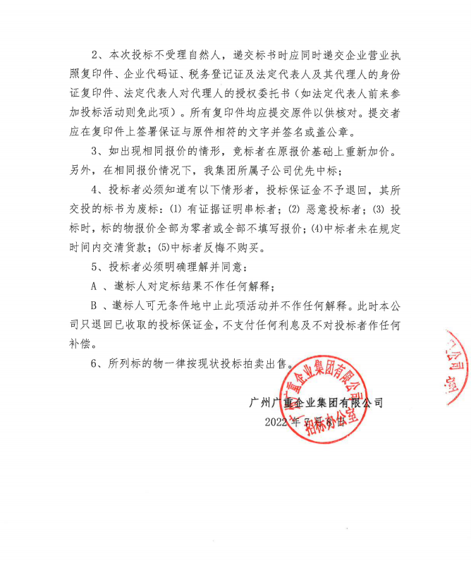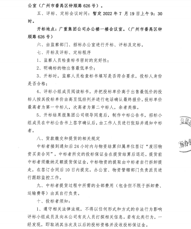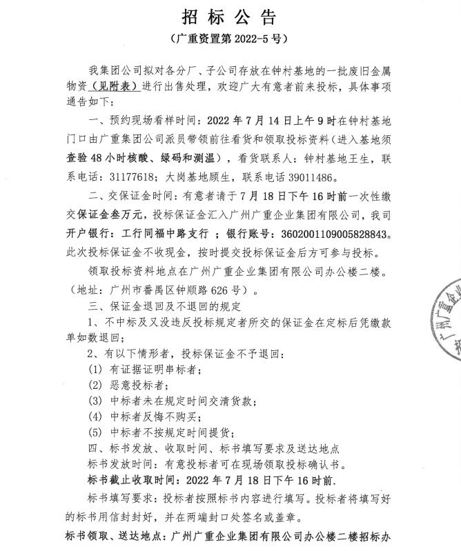 廢舊金屬物資處置(廣重資置2022-5號)
