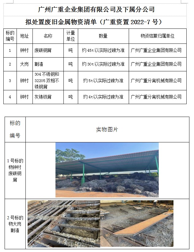 廢舊金屬物資處置(廣重資置2022-7號(hào))