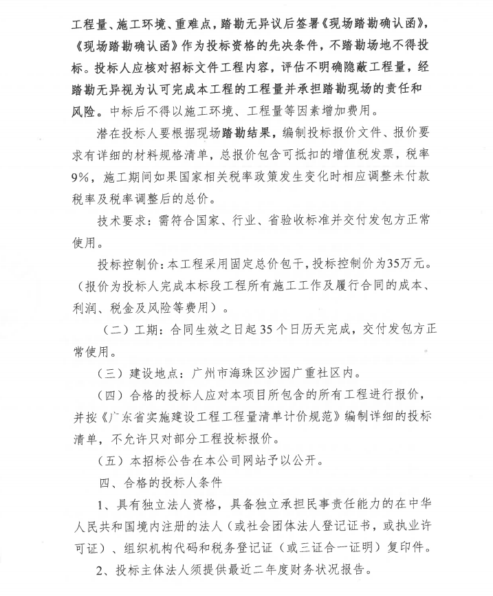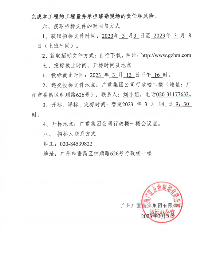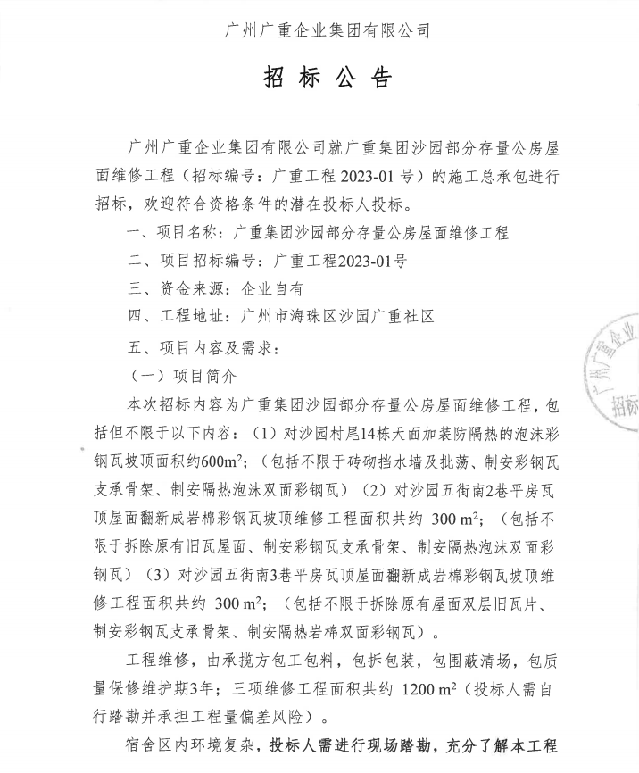 廣重集團沙園部分存量公房屋面維修工程項目招標公告